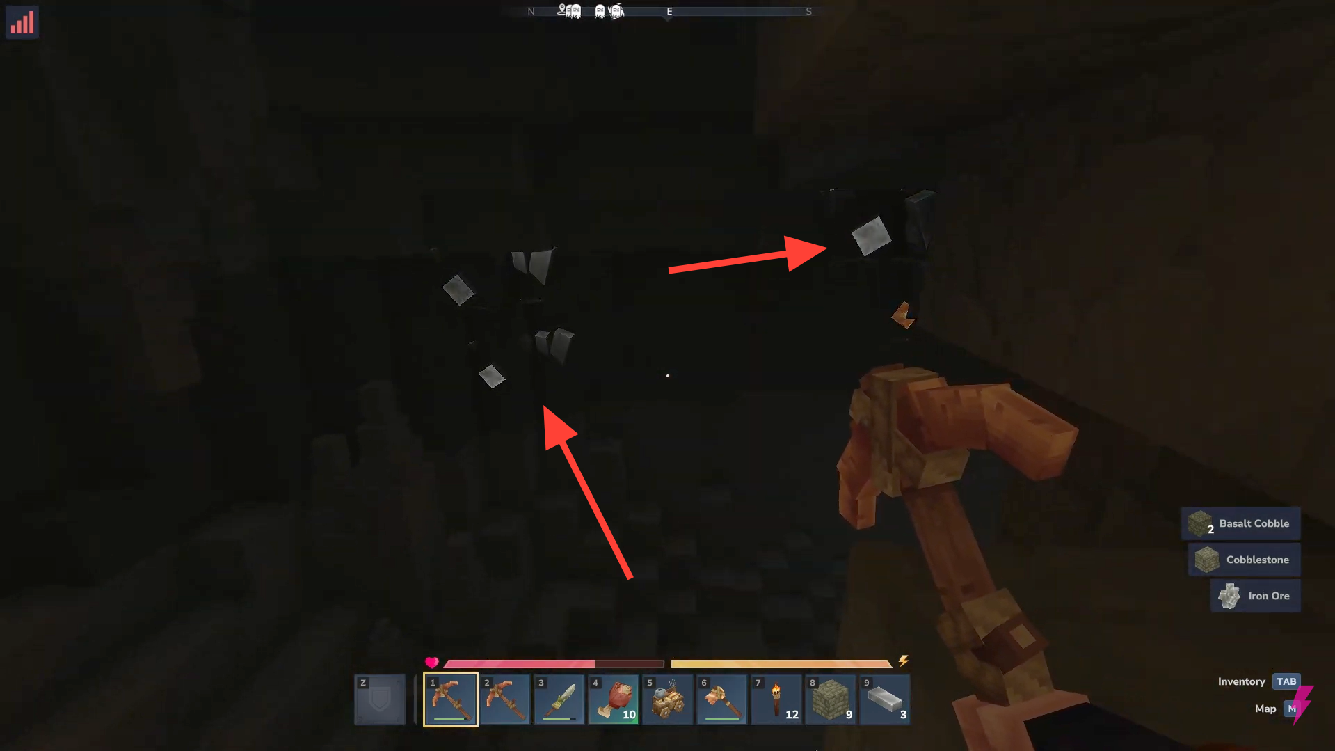 Iron appears across Zones 1 through 3, most commonly in deeper cave systems. It is especially frequent in Zone 1 caves, Zone 2 deserts like the Howling Sands, plains regions, and Zone 3 snowy biomes. Iron veins are usually deeper than copper and often found in ravines.