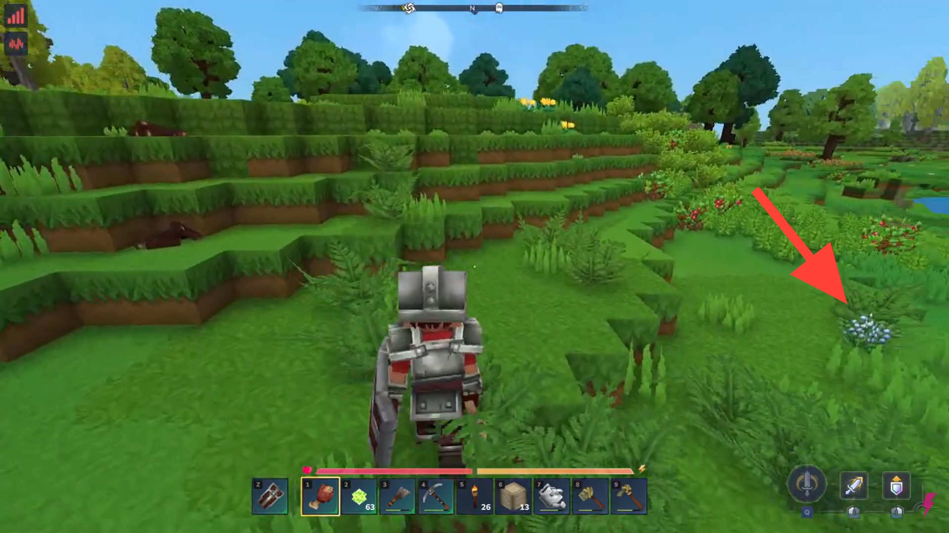 Equip the crude hatchet in your hotbar.