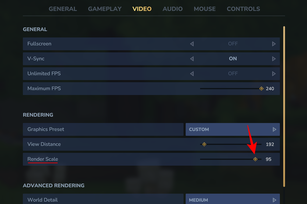 | Render Scale | 95% | Medium (lowers resolution rendering) |