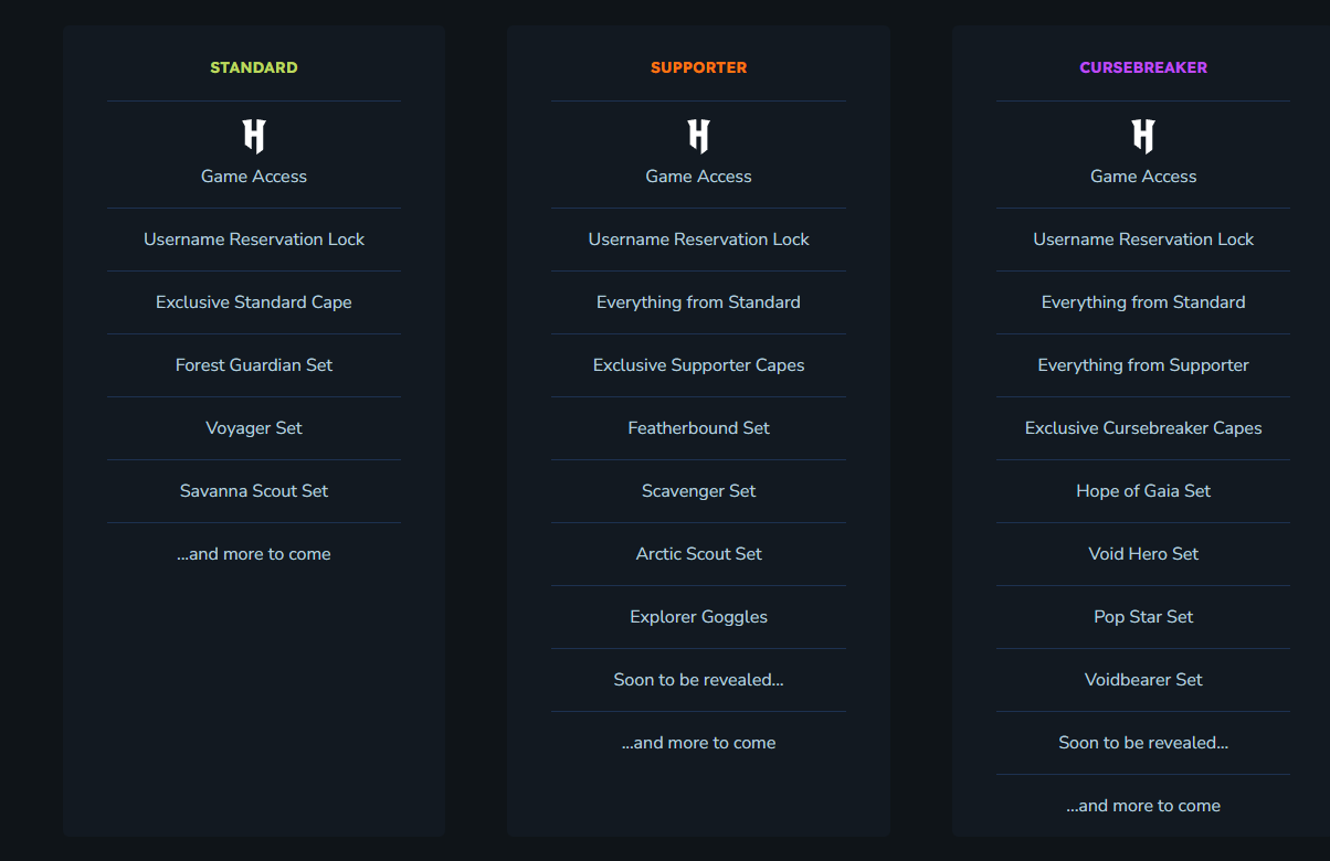 | Cursebreaker (Founders) Edition | $69.99 | All lower-tier content plus premium and founder cosmetics |
