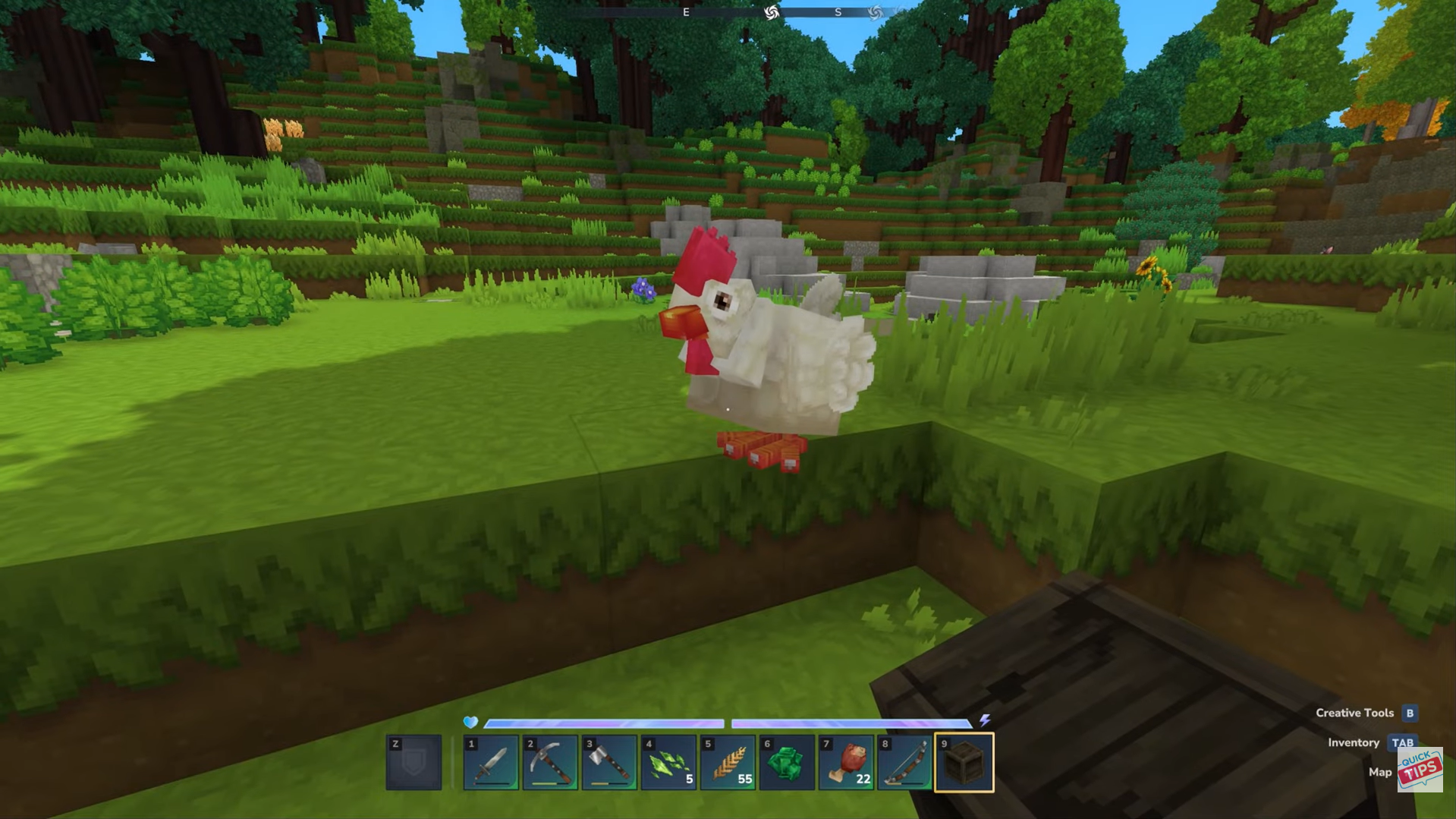 Chickens spawn in the main neutral zone, the grassy, open area around spawn, often called Zone One. They are easiest to spot in the plains and along the forest edges, where open fields make them visible. Deep in dense forests, chickens are harder to find. In Creative Mode, flying around this grassy region makes locating them much faster, though they still remain relatively rare.