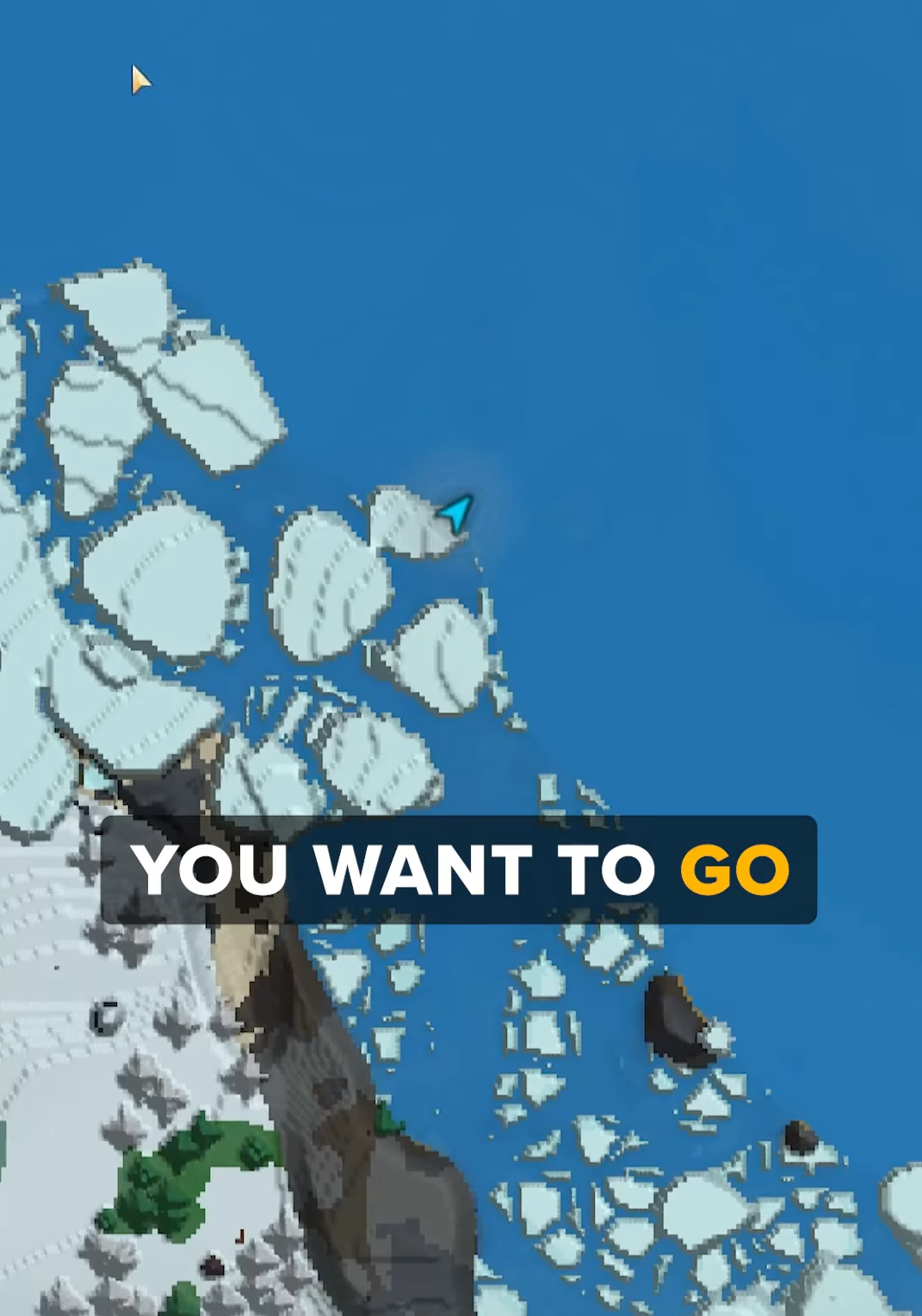 Open your map and head toward cold-region coastlines/biomes that lead into deep water (devastated lands, borea, or Zone 3 ice caps/glaciers). Prioritize very deep, clear-blue water and avoid shallow areas.