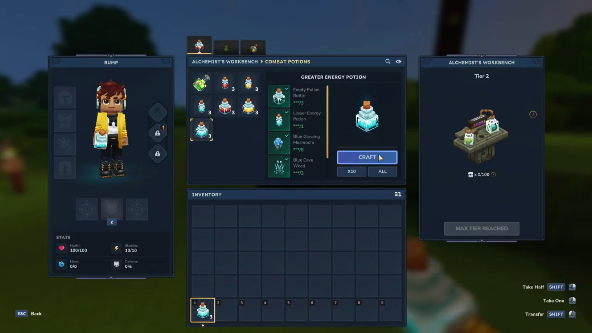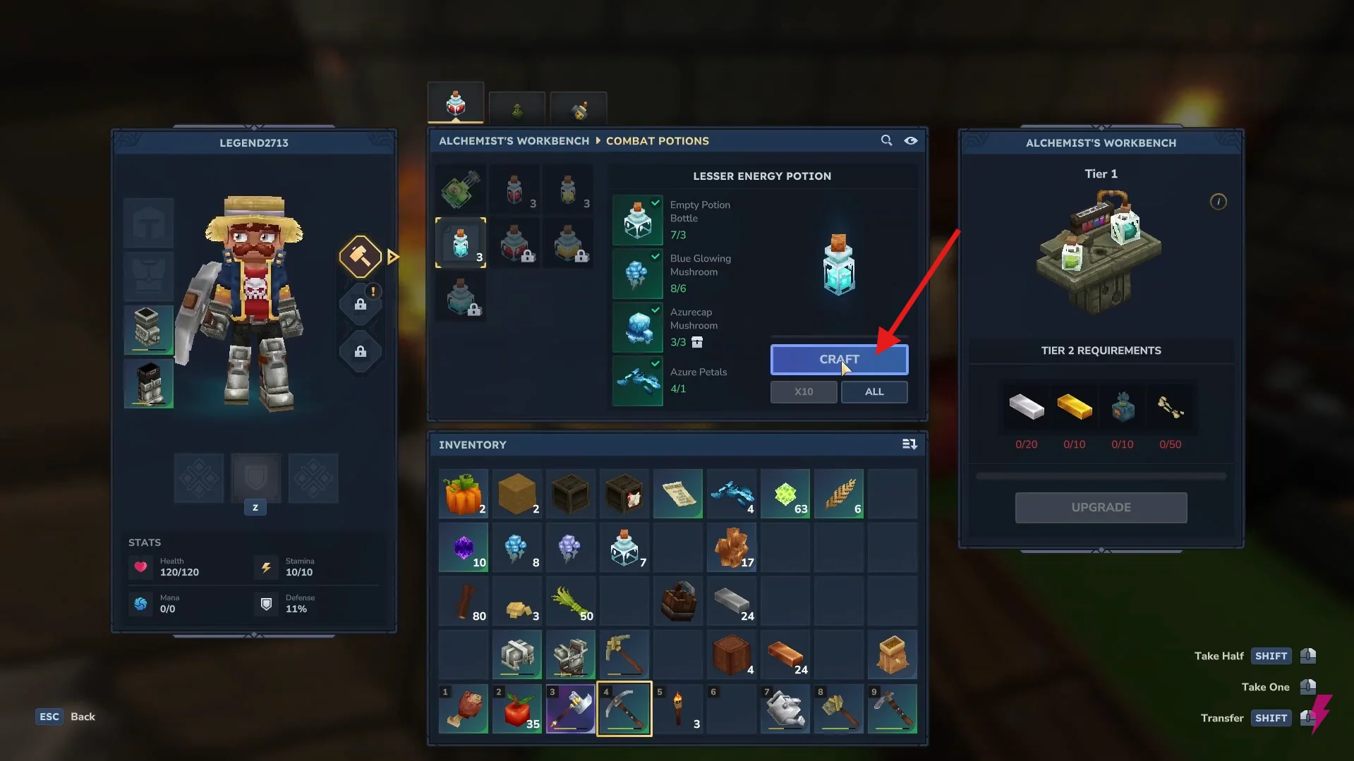 - Craft a Lesser Energy Potion at the Alchemist Workbench using its required materials.