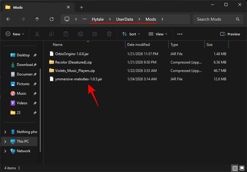 Then place the .jar file in the following folder – C:\Users(username)\AppData\Roaming\Hytale\UserData\Mods