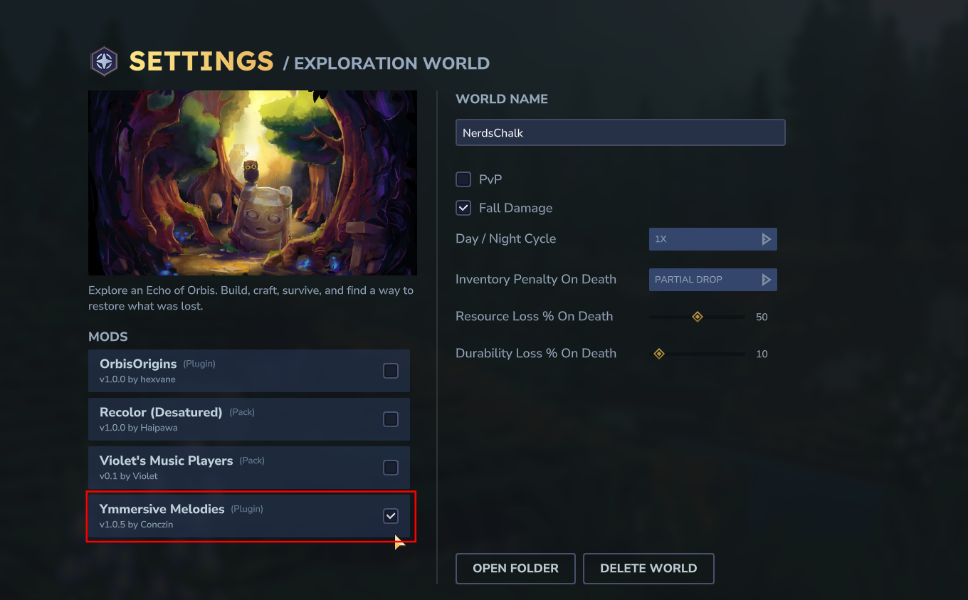 Right-click on your world, then enable Ymmersive Melodies. Save changes.