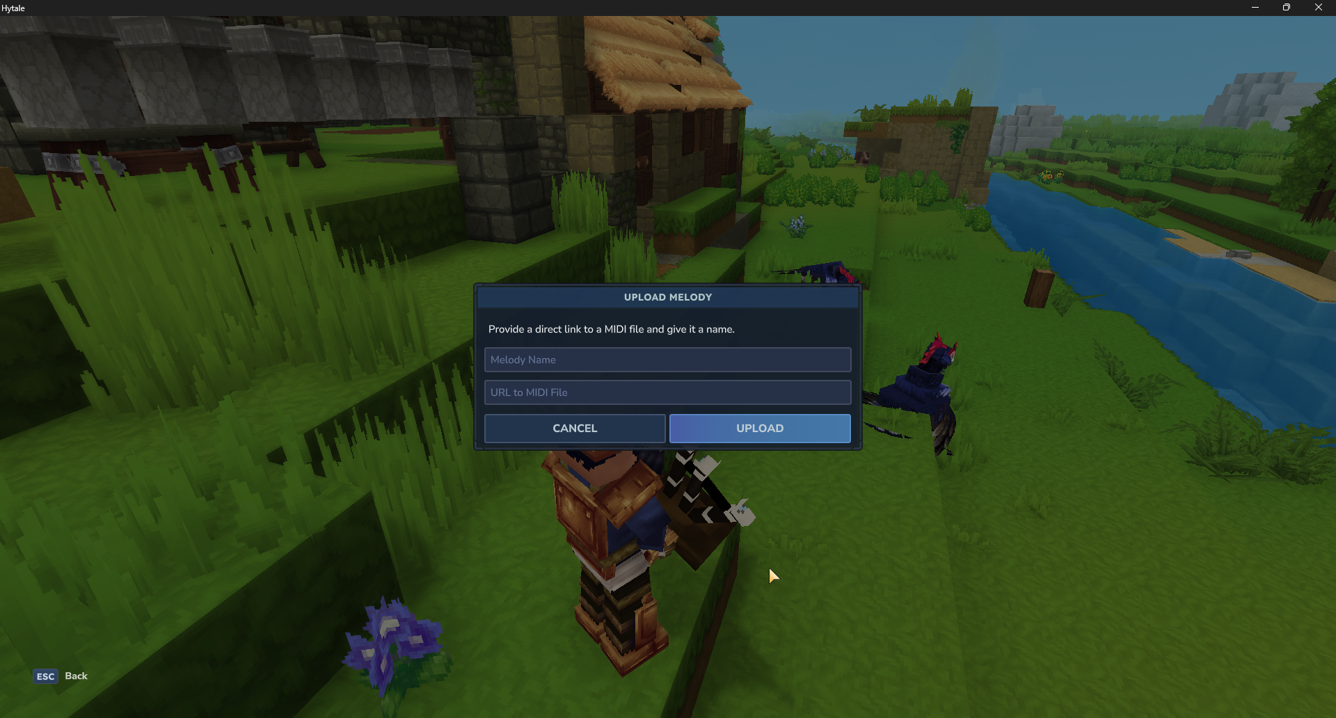 Back in Hytale, open the instrument’s custom Upload option.