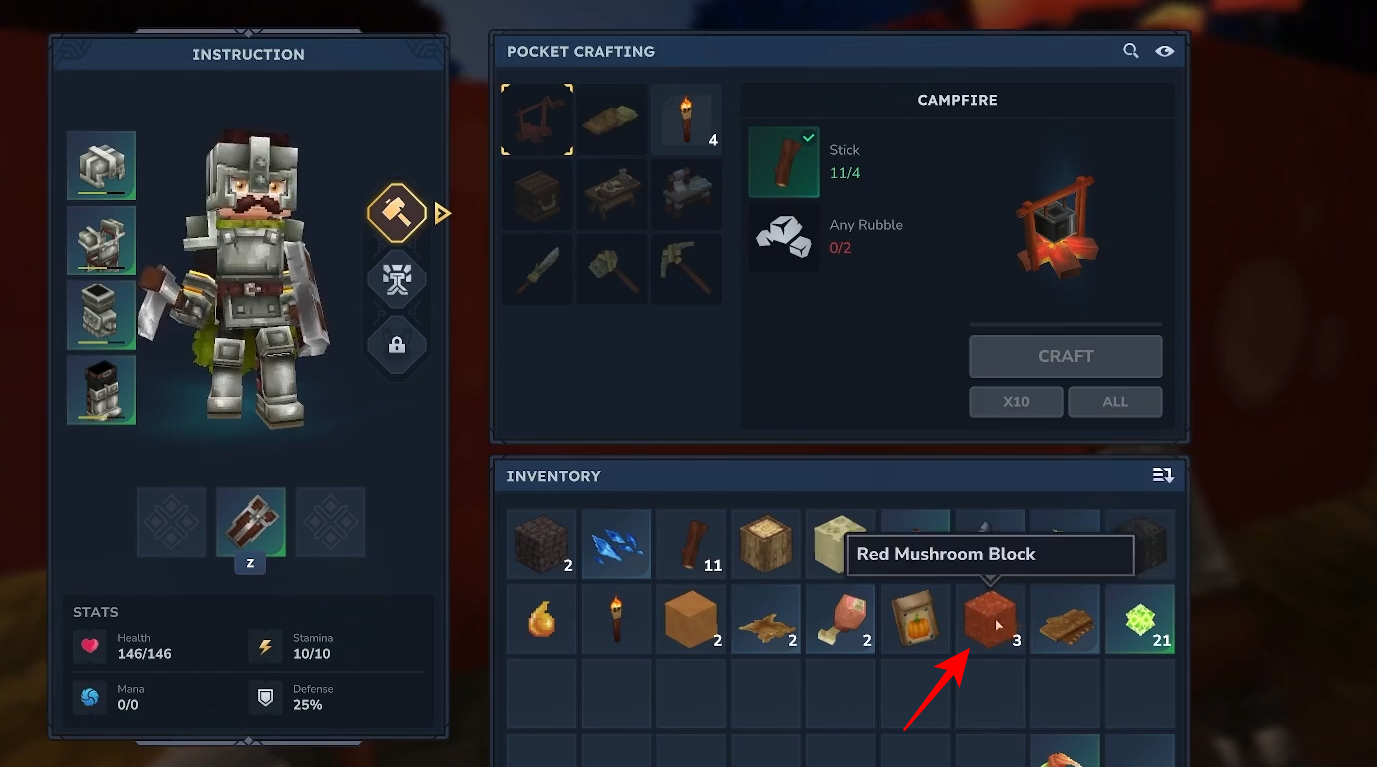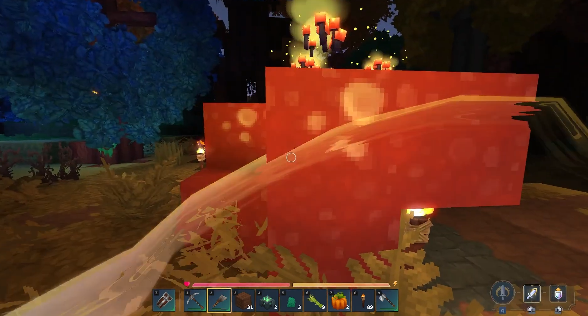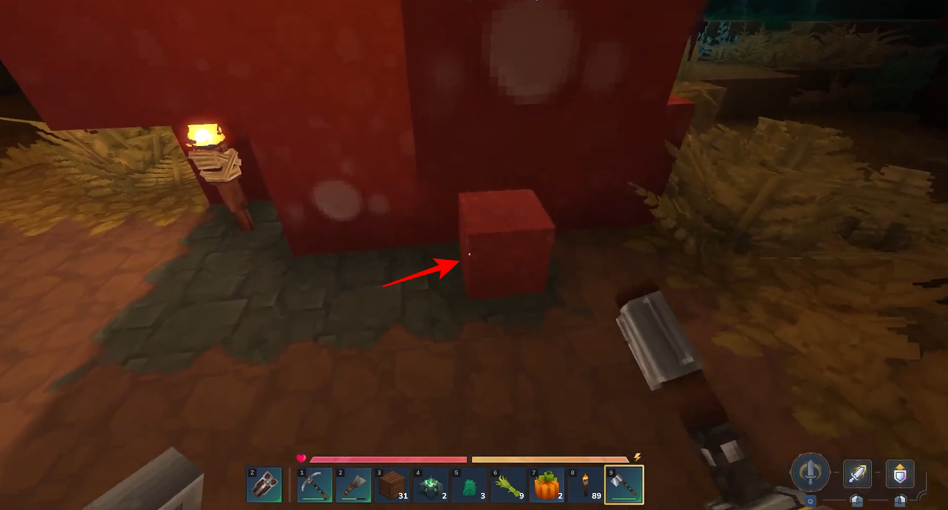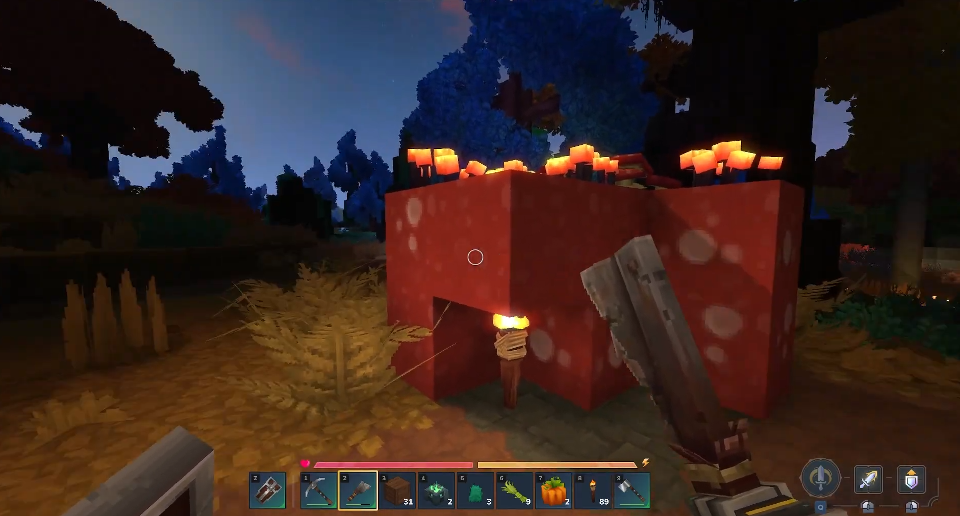 Once inside the Autumnal biome, look for large mushroom structures. The blocks that make up these structures, such as the Red Mushroom Block, can be harvested individually.