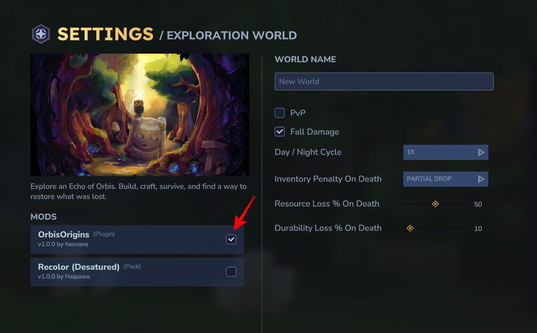 Select OrbisOrigins under “Mods”.