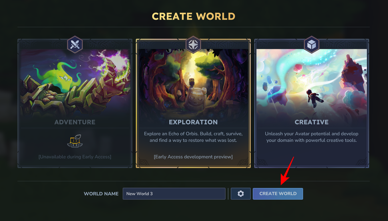 Give your world a name and click Create World.