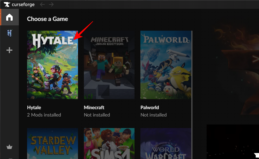 Navigate to the Hytale section in CurseForge.