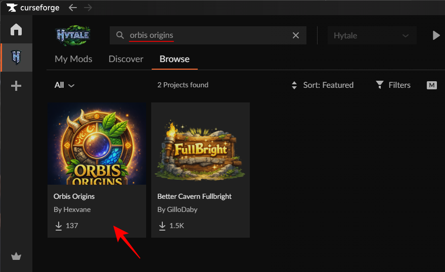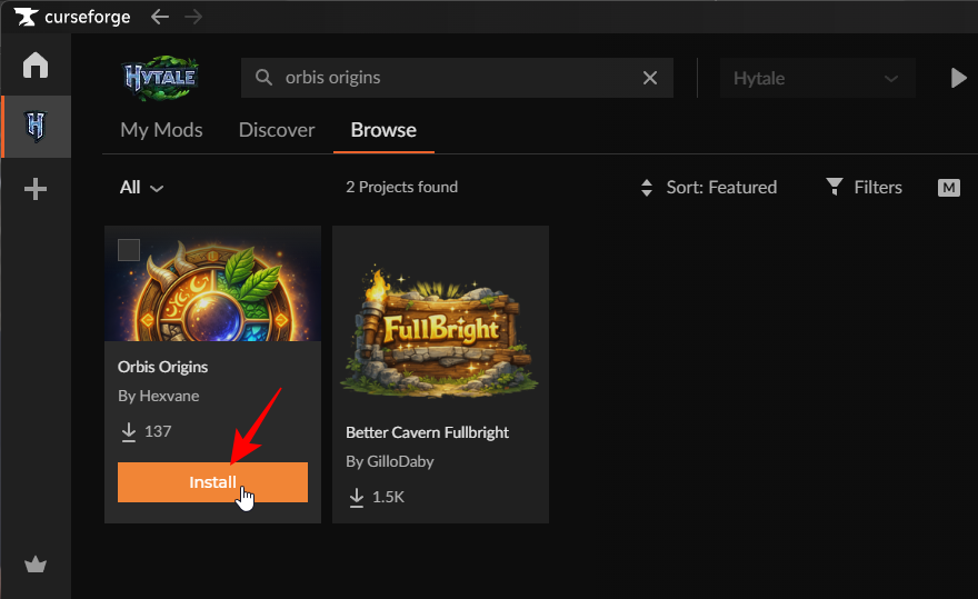 Hover over the ‘Orbis Origins’ mod and click Install.