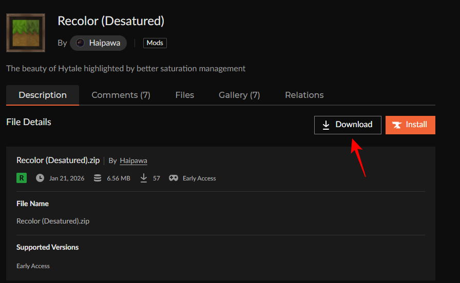 Let’s face it, Hytale‘s colors are too saturated. Fortunately, Hytale’s modding scene provides a few quick fixes. The mod “Recolor (Desaturate)” lets you to easily add this tweak to personalize your gameplay without altering core files.