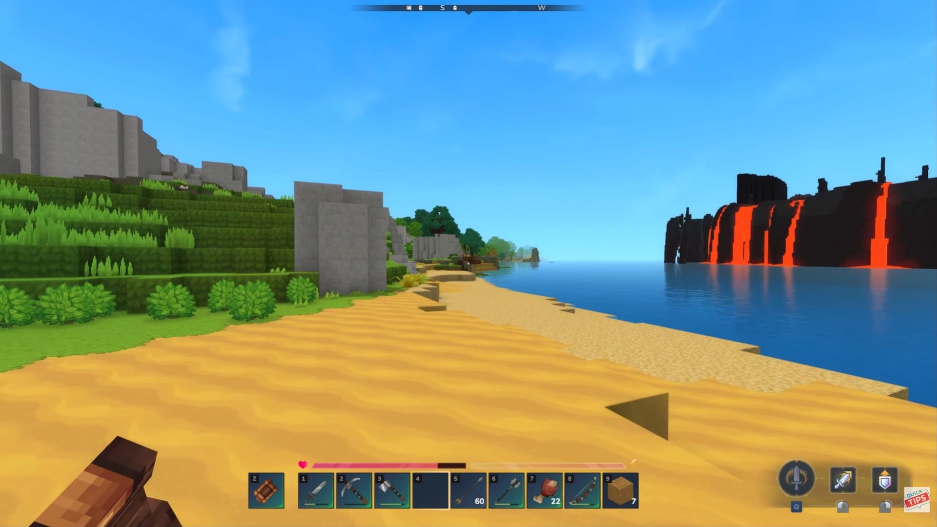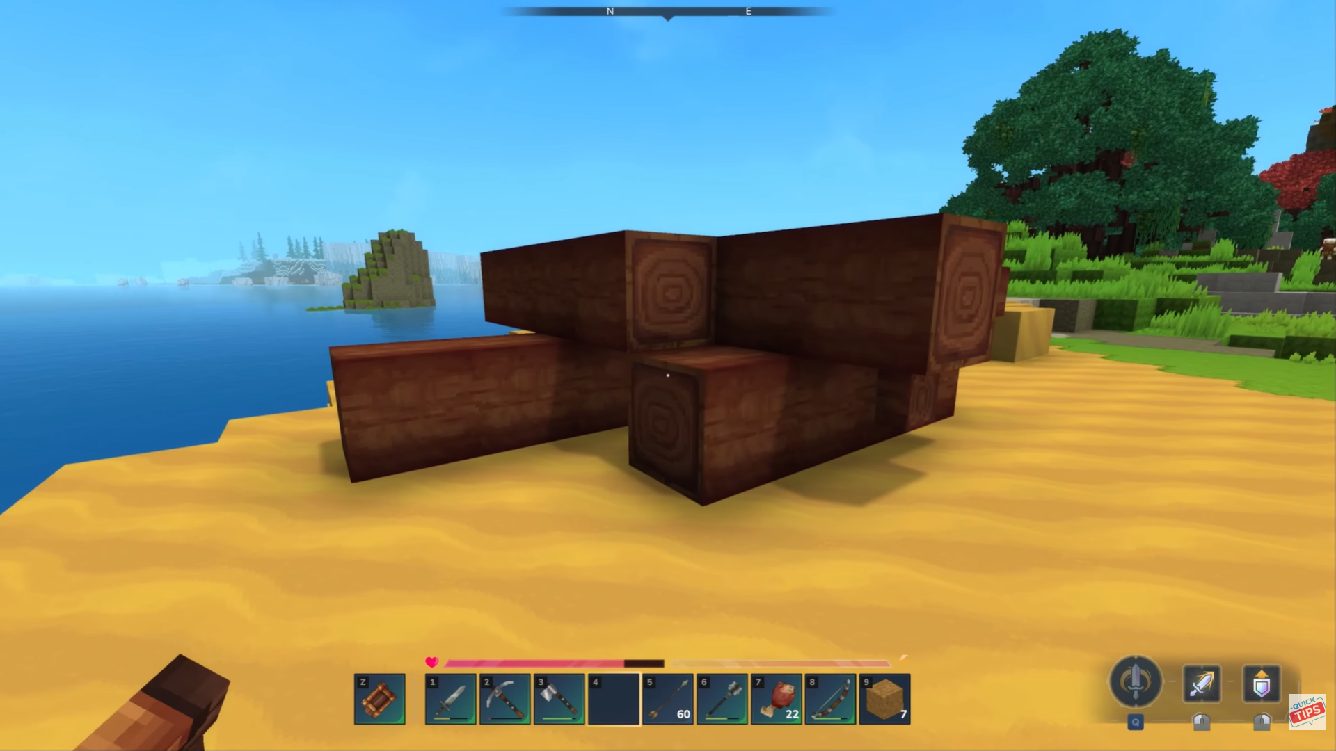 Beach farming avoids hostile mobs, steep terrain, and biome-specific threats. You can collect large amounts of Red Wood early without armor upgrades or advanced tools, making it ideal for builders and early progression players.