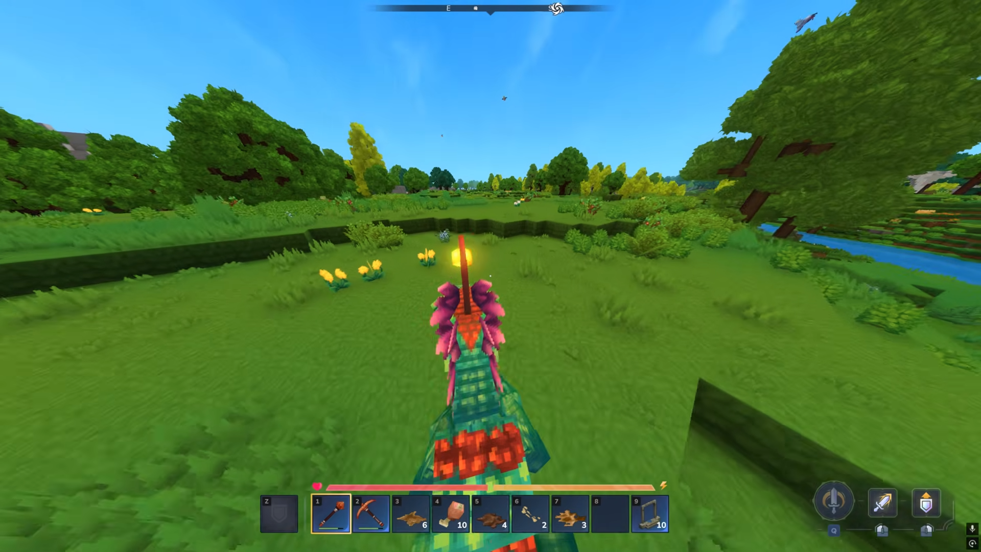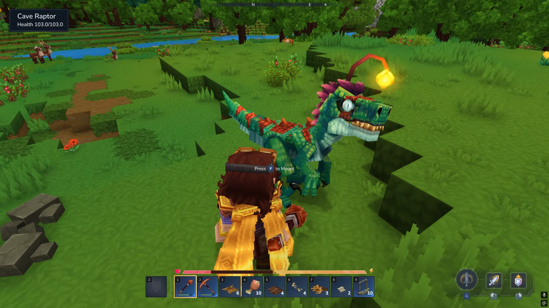 Press F to get off in a safe spot—avoid mobs, as you can’t attack from mount.