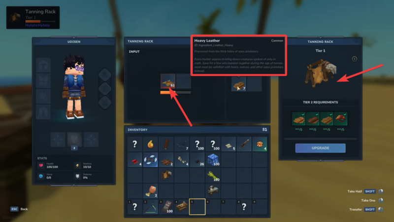 Heavy Hide is a base material collected from animals such as mosshorns, bears, crocodiles, moose, cows, and ember wolves. You’ll need a steady supply, so hunting routes near multiple animal spawns help.