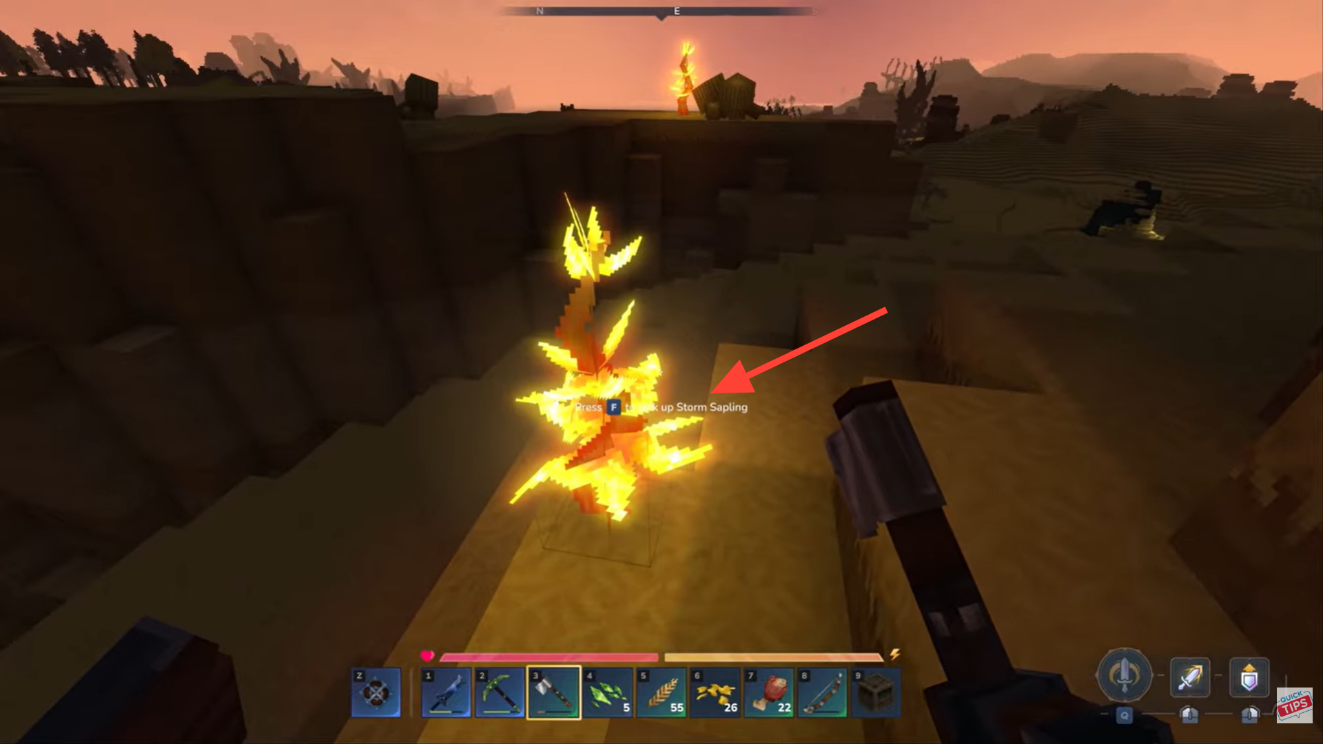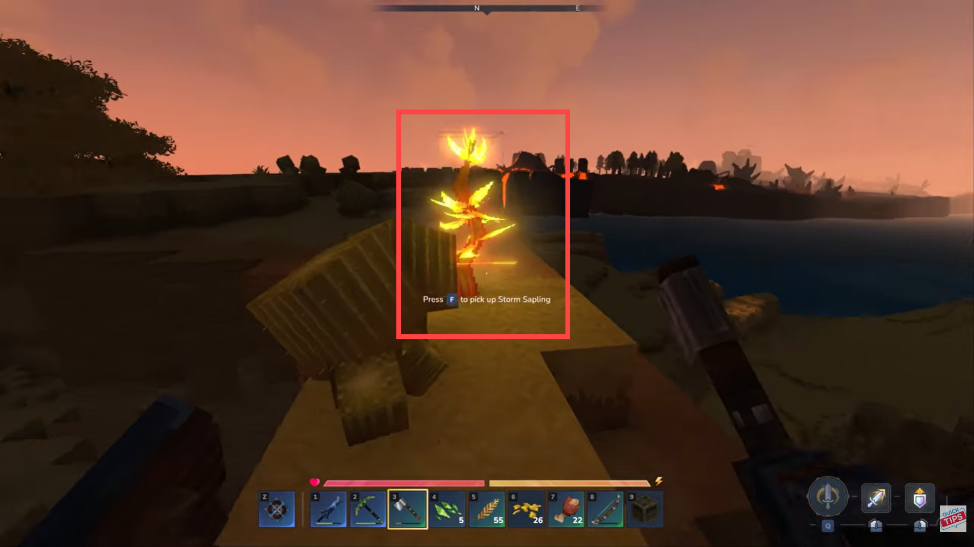 Equip a pickaxe or appropriate tool. Break the Storm Sapling using the tool.