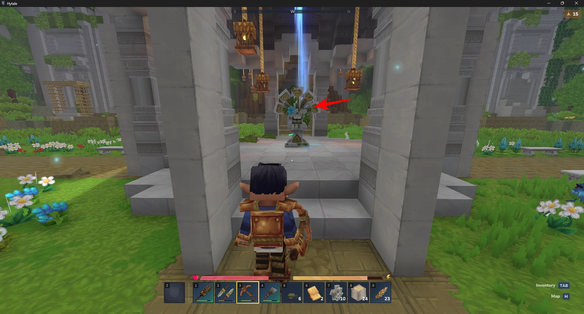 In the Temple area, interact with the central structure to record Memories and receive decorative chests, eternal seeds, and extra teleporters.