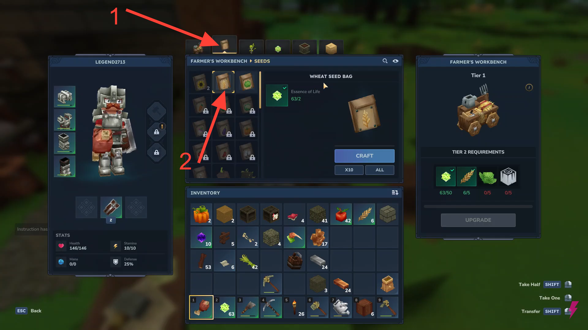 In the beginning, simply explore the overworld to collect wild wheat and earn some Essence of Life. Once you have a Farmer’s Workbench, you can move on to proper farming: purchase wheat seed bags, till the soil, plant, water, and harvest your crops as they mature. This sustainable cycle provides a steady supply of wheat while steadily generating Essence of Life, helping you unlock higher-tier farming tools and upgrades.