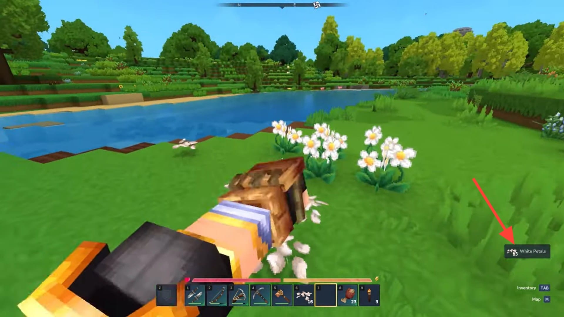 Pick white flowers along riverbanks in Zone 1 to obtain White Petals.