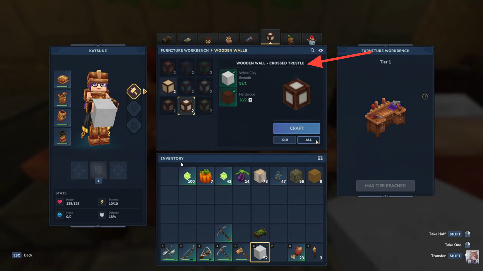 Open the Furniture Workbench crafting menu and select White Clay – Smooth.