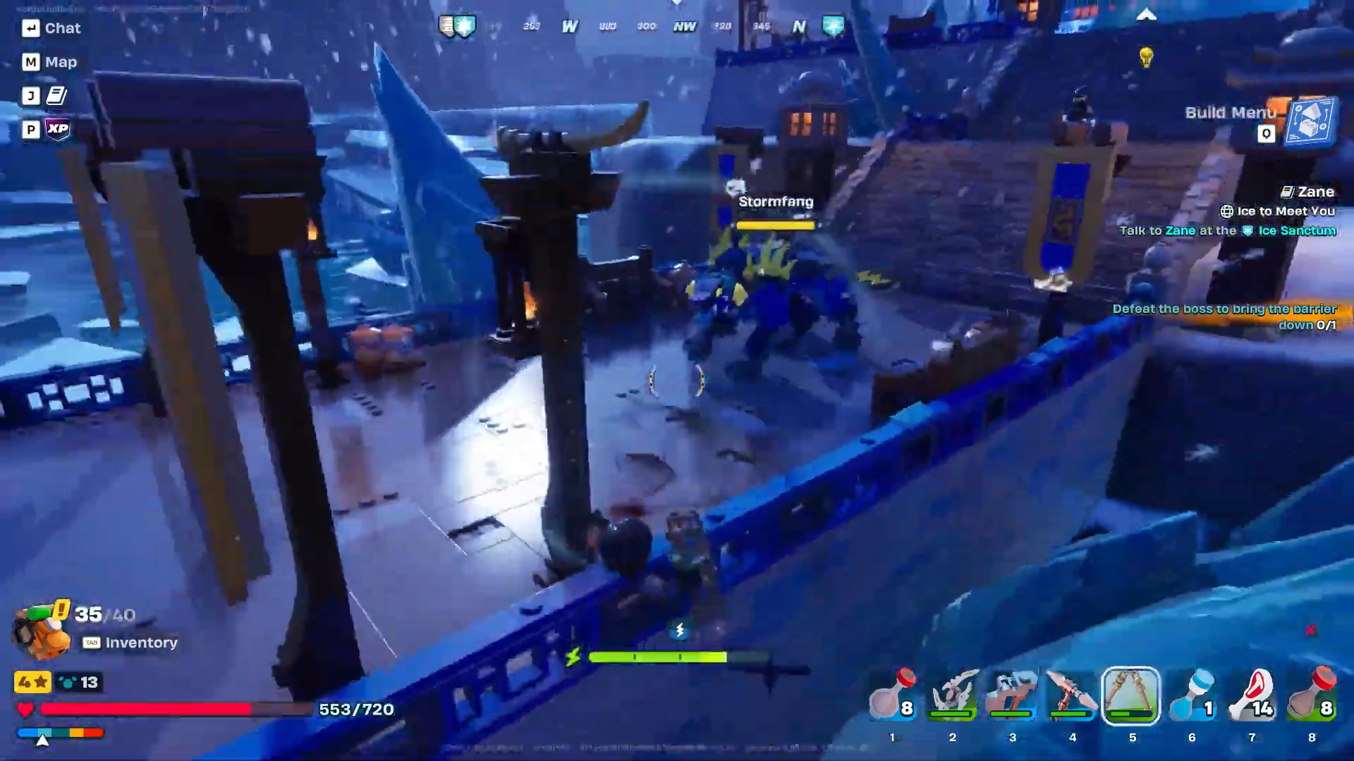 Free the Ice Sanctum from the boss to bring the barrier down. The boss, Stormfang, comes with his ally guards. Knock them all out to complete the Ice Sanctum objective.