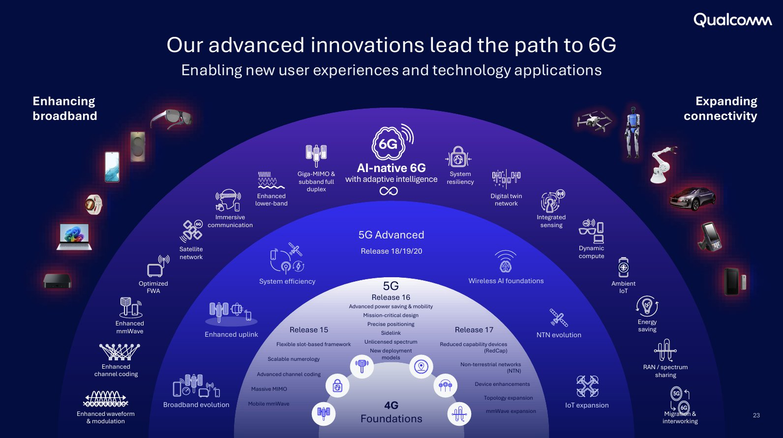 That integration simplifies hardware design for phones, tablets, XR headsets, and laptops while boosting performance, coverage, and efficiency.