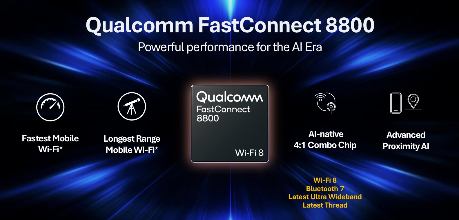 - Qualcomm’s Wi-Fi 8 chips integrate multiple radios and standards (Wi-Fi 8, Bluetooth 7, UWB, Thread) for smarter multi-device ecosystems.