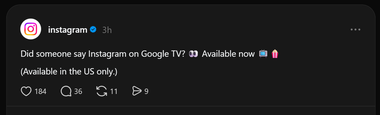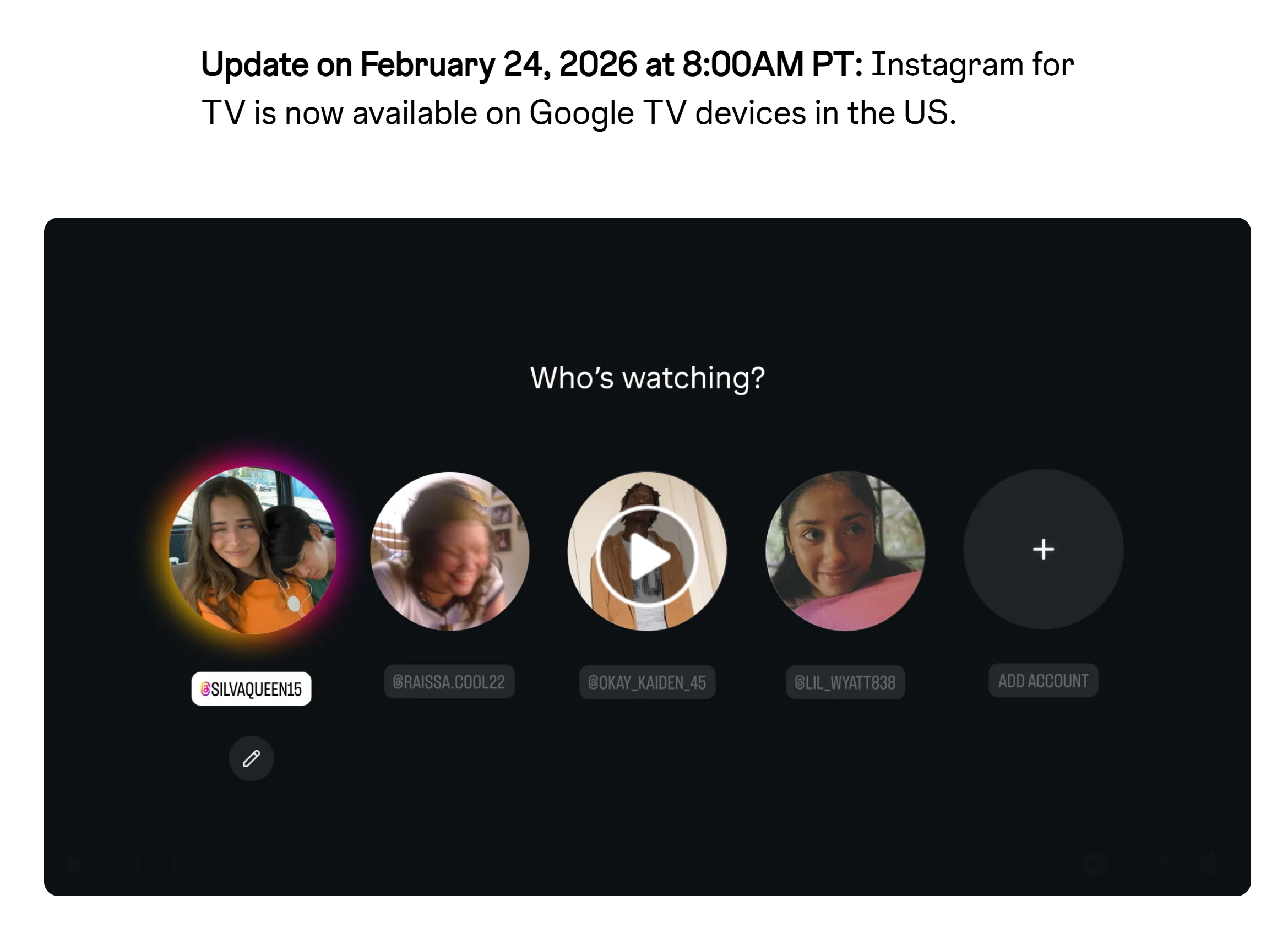 Instagram is expanding its dedicated TV experience to Google TV devices in the United States, building on a launch that started on Amazon Fire TV in December. The move shifts Instagram further beyond the phone screen and into the living room, where people increasingly watch short-form and creator-driven video on big screens.