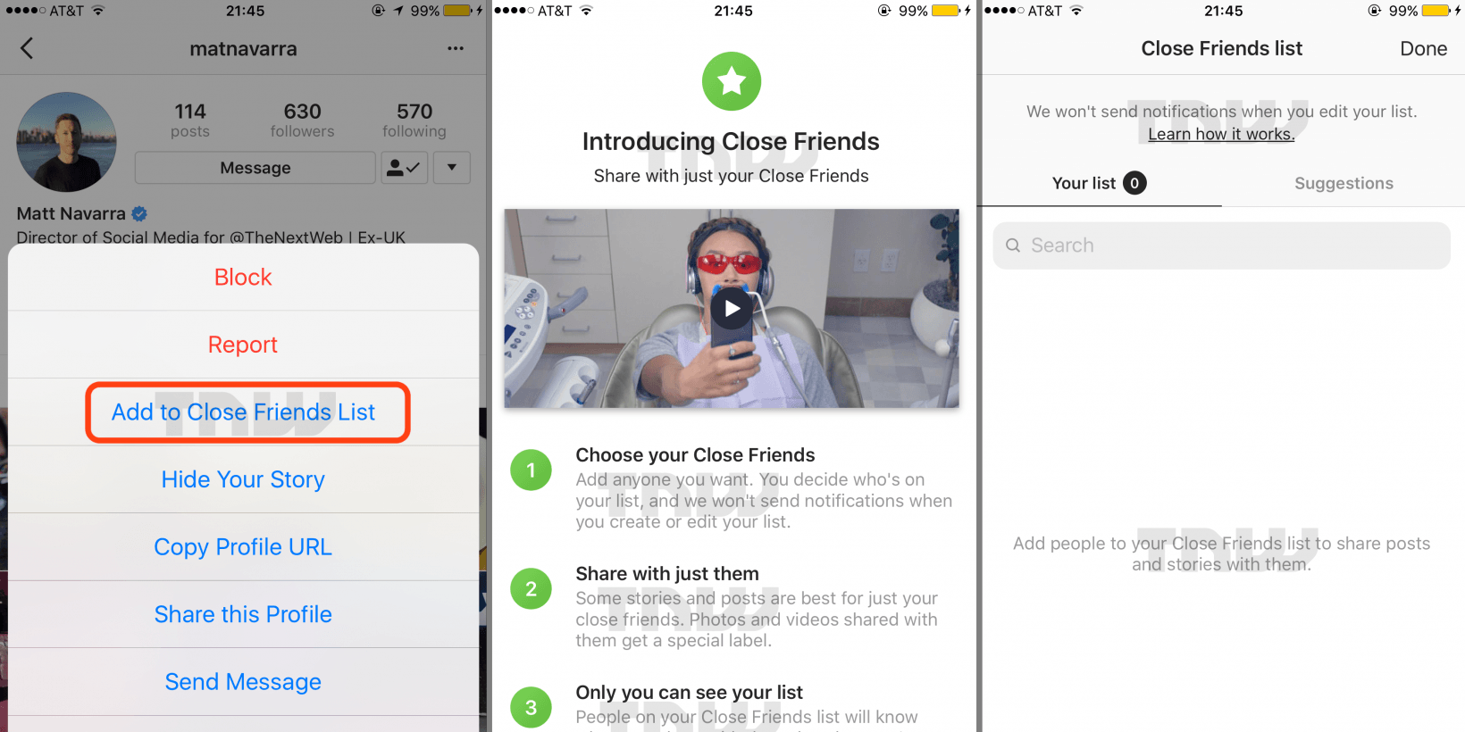 You can add your closest friends to a new list and share content with them or send them DMs. The friends who are added to the list will not be notified when they’re added, but will get notifications for content shared.