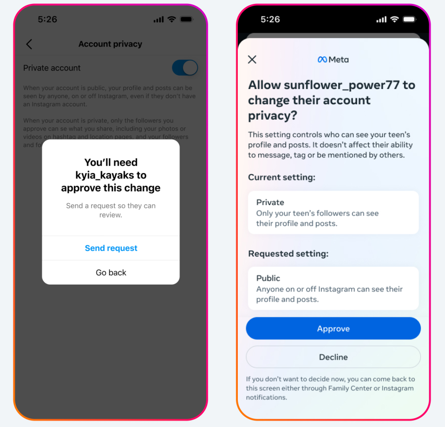 On top of this, Meta will also prompt parents who are using the Parental Supervision Tools on Instagram whenever their teens want to change their default privacy settings and make them more lax.