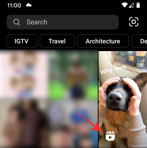 • Look for Reels videos inside Instagram’s ‘Explore’ screen: Just like other publicly posted photos and videos, some popular Reels videos might all appear inside the ‘Explore’ screen on the Instagram app. To check this, open the Instagram app, tap on the ‘Search’ icon at the bottom, and scroll through this screen to find a portrait video indicated with the Reels icon.