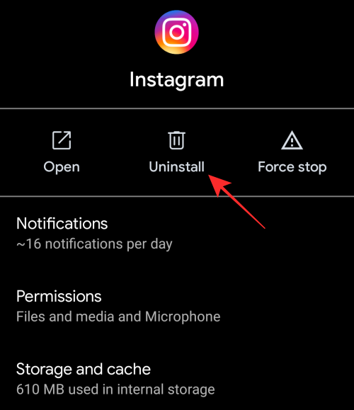 Inside Instagram’s App info screen, tap on the ‘Uninstall’ option and then confirm the process.