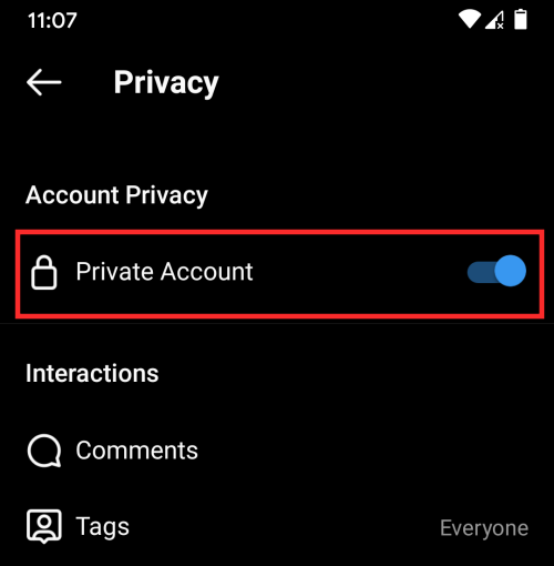 Next, disable the toggle adjacent to ‘Private Account’ to make your account public to everyone on Instagram.