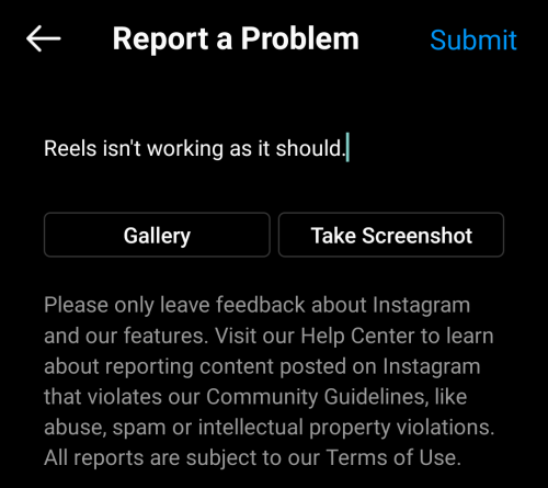 If you have tried every single solution from this post but you’re still facing an issue or two while using Instagram Reels, then you’re left with just one option. You should report your issue directly to Instagram so that they know what you’re facing.