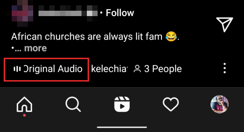 Another temporary solution to the problem will be to re-use another user’s Reel audio to create your own. To do this, select and a Reel you want to use audio from and tap on the Audio title that appears at the bottom of the Reel.