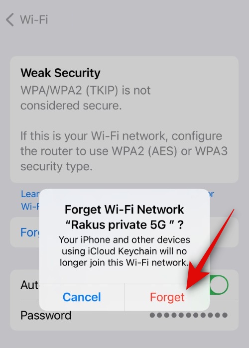 beside the Wi-Fi network > Forget This Network > Forget.