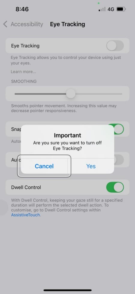 4. Once set up, you’ll be asked if you want to use Dwell and Scroll with AssistiveTouch. Select Yes.