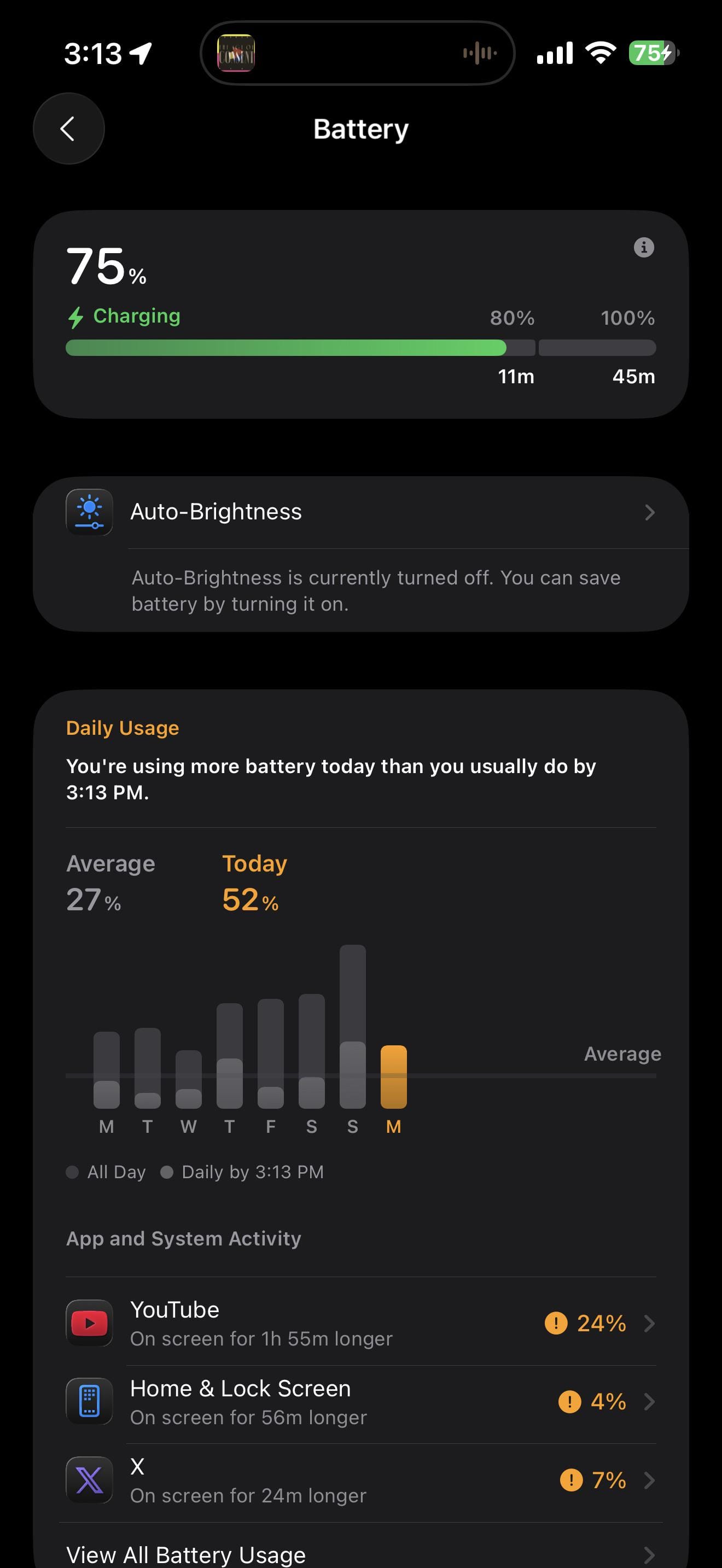 In iOS 26 Developer Beta 1, the Battery screen now shows how long it’ll take to reach 80% and then 100%, helping you plan your unplug times better. As seen in the screenshot, 80% will be hit in 11 minutes, while a full charge will take 45 minutes.