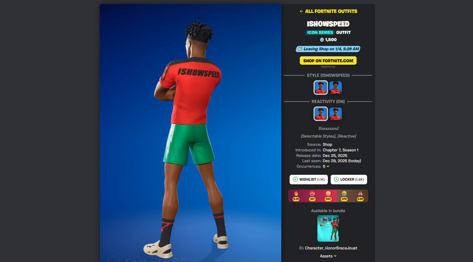 | IShowSpeed Outfit | Included | 1,500 V-Bucks |
