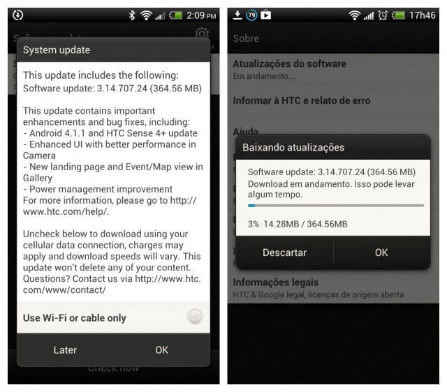 The 364.54MB update brings the new HTC Sense 4+ UI found on the One X+, as well as camera performance improvements, better power management (read: better battery life), a new Gallery with Event/Map view, and the usual slew of Jelly Bean features, such as a faster and smoother interface, Google Now, expandable and actionable notifications, resizable widgets on the homescreen, and all in all better performance and stability.