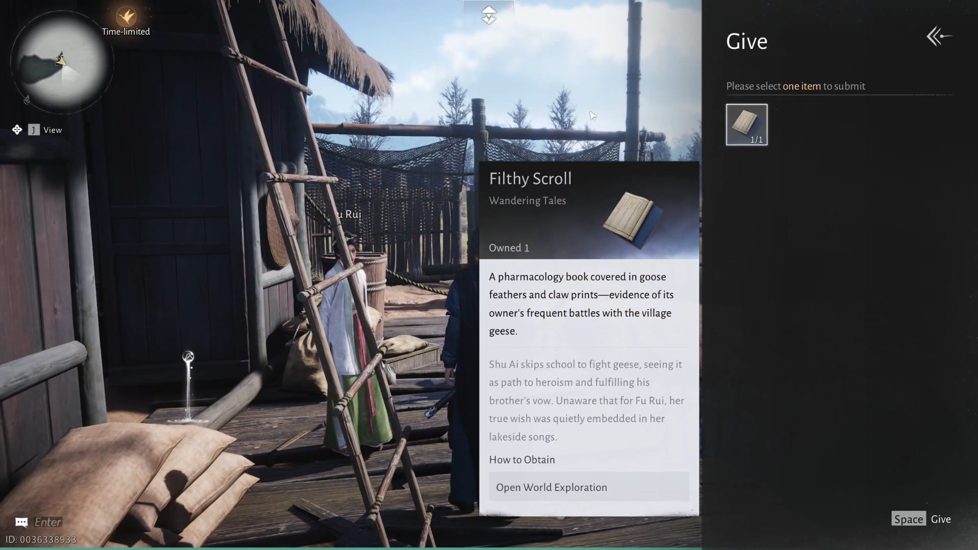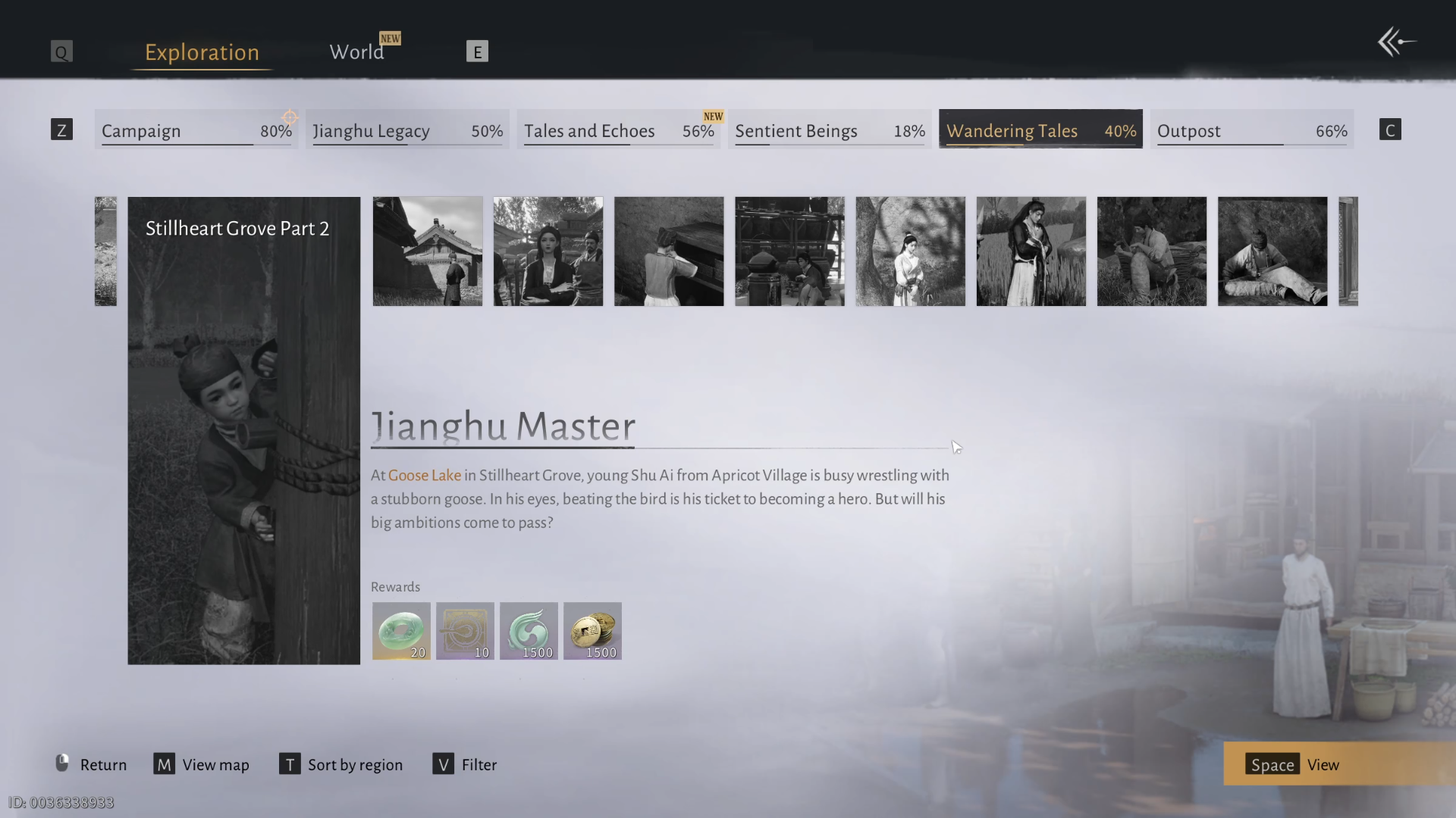 'Jianghu Master' is one of the Wandering Tales in Where Winds Meet. It's about a small boy who keeps fighting goose thinking that he'll become a hero if he defeats one, and his sister who wants nothing but his safety and for him to attend school. You're tasked to find the boy's scroll and give it to the sister, revealing what he's been up to.