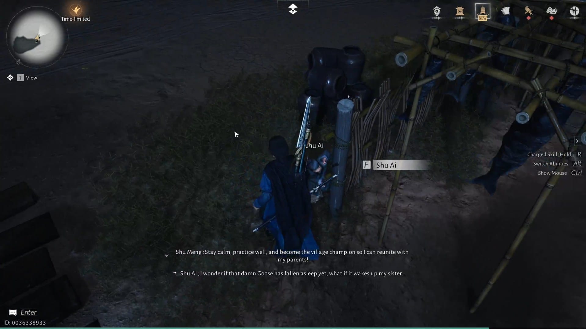 Make your way to Apricot village at night and find Shu Ai.