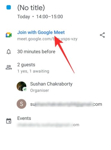 Google Calendar is, of course, available on Android and iOS devices as well. After launching Google Calendar, go to the event on your Calendar and tap on ‘Join with Google Meet.’