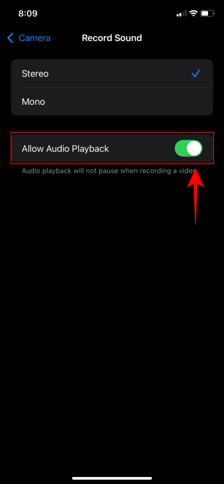 - Tap on Record Sound and make sure Allow Audio Playback is enabled.