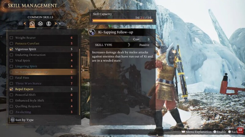 This skill rewards aggressive Ki pressure. When you fully deplete an enemy’s Ki bar, they enter a winded state, opening them up for grapples and heavy follow-ups. Ki Sapping Follow-Up amplifies that window into a high-damage opportunity.
