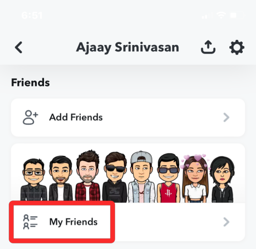 - This will open the My Friends screen where you should see a list of people with whom you’re friends on Snapchat. You can either scroll through this list or search for someone’s name or username using the “Find Friends” search box at the top.