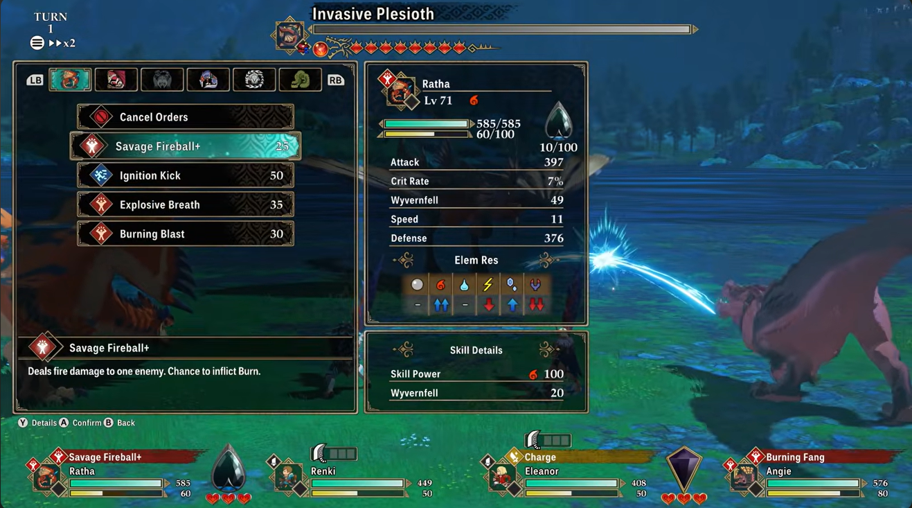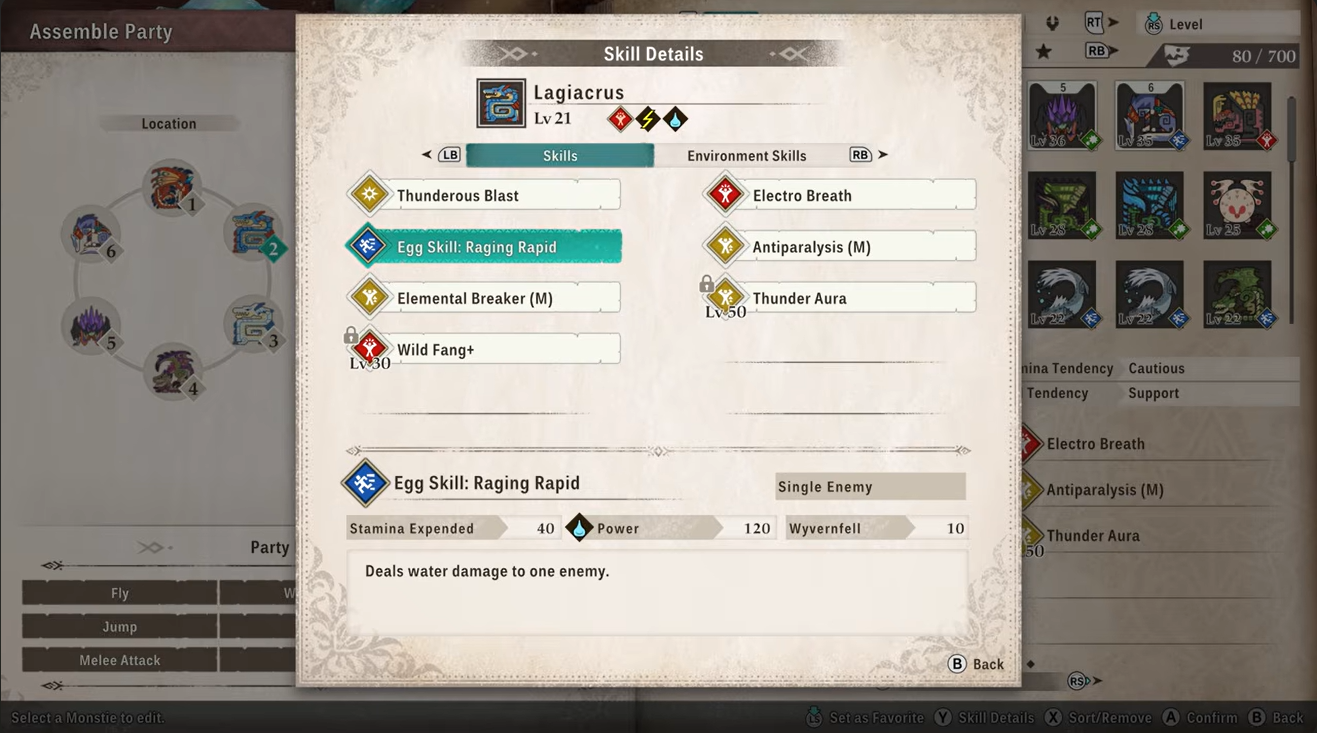 Some of its most useful abilities include Raging Rapid, which deals strong multi-hit damage, Thunder Aura, which can inflict paralysis on enemies, and Wild Fang+, a powerful physical attack that scales well into later stages of the game.