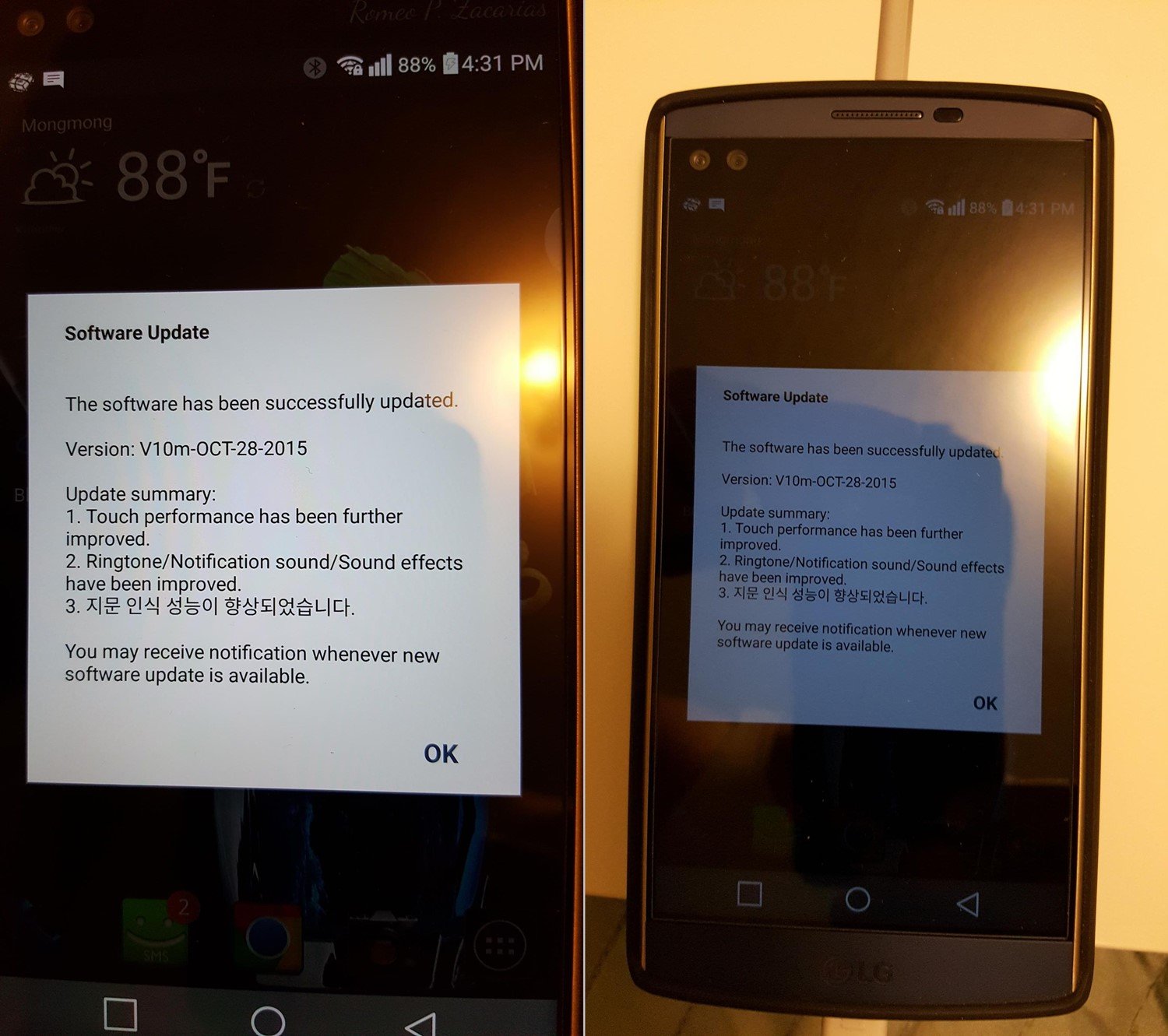 A new update is rolling out for LG V10 in Korea with software version being V10m-OCT-28-2015.