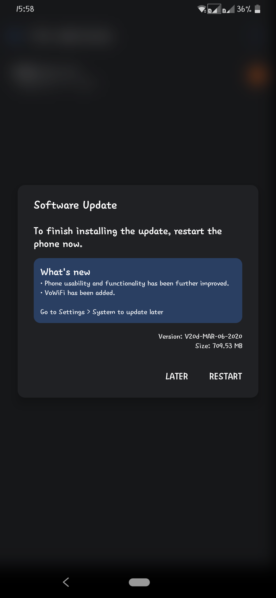 | 19 May 2020 | Android 10 update (Size: 1.37 GB) |