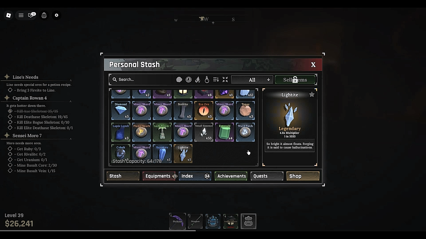 Lightite is a legendary-level ore in The Forge Roblox. It is found only in the basalt vein formations of the Forgotten Kingdom area. It is one of the most valuable items in the game because of its rarity and extremely low drop rate.